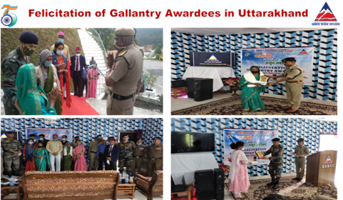 In a ceremony organised by Project Hirak of BRO at Pithoragarh, tokens of appreciation were awarded to the next of kin of Shaurya Chakra awardees – EEM Prem Singh, Naik Chandra Singh, Driver Ram Singh and DME Damar Bahadur. In a separate ceremony at Pipalkoti, Project Shivalik of BRO felicitated the next of kin of Major Preetam Singh Kunwar, Kirti Chakra; Lance Naik Raghubeer Singh, Shaurya Chakra (Posthumous) and Naib Subedar Surendra Singh, Shaurya Chakra.