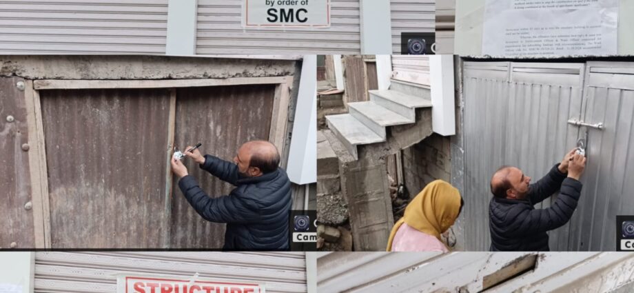 SRINAGAR, FEBRUARY 28(KNB): In a proactive measure to uphold building regulations in Srinagar, the Srinagar Municipal Corporation (SMC) has sealed a commercial structure located at Shah Mohalla Nawab Bazar.
